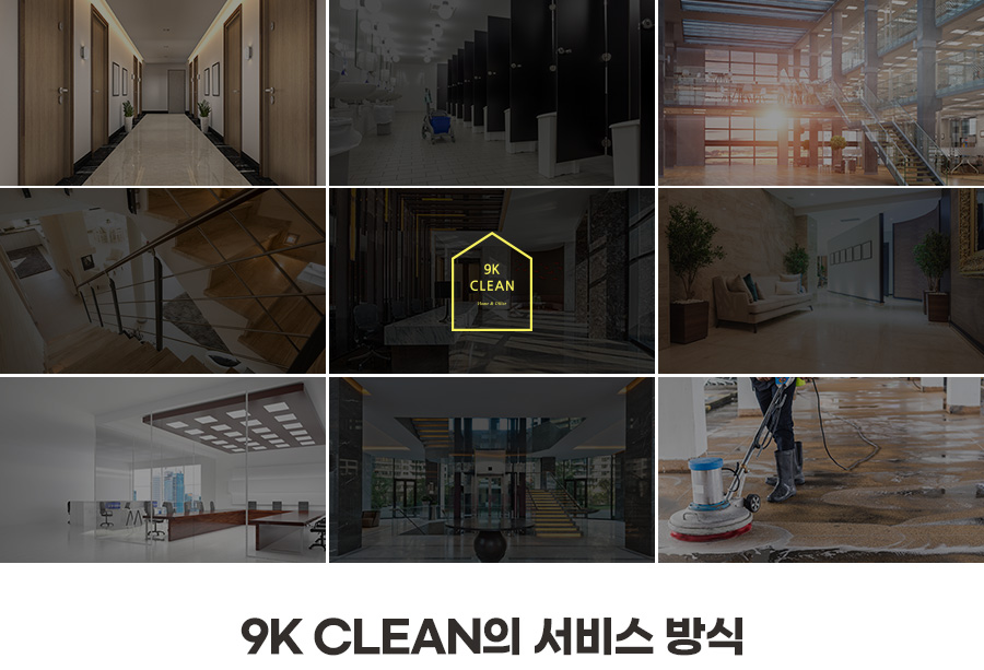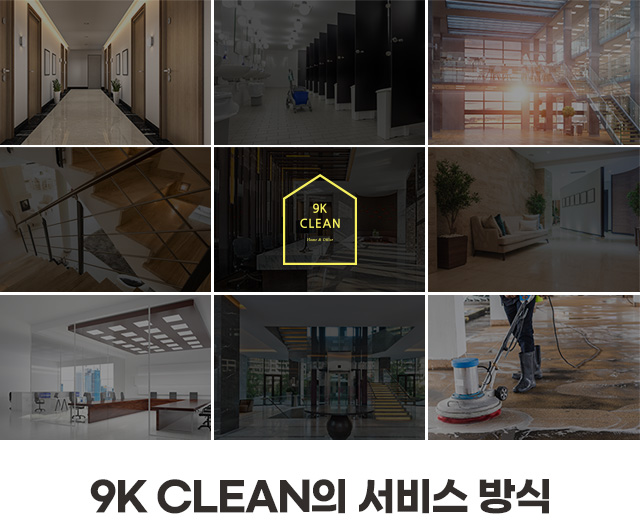 9K CLEAN은 사무실, 병원, 상가 시설 전문 클린 서비스 업체로서 그 곳에 상주하고 있는 사람들과 오가는 사람들 모두를 위한 완벽한 프리미엄 클린 서비스를 제공해 드릴 것을 약속합니다.